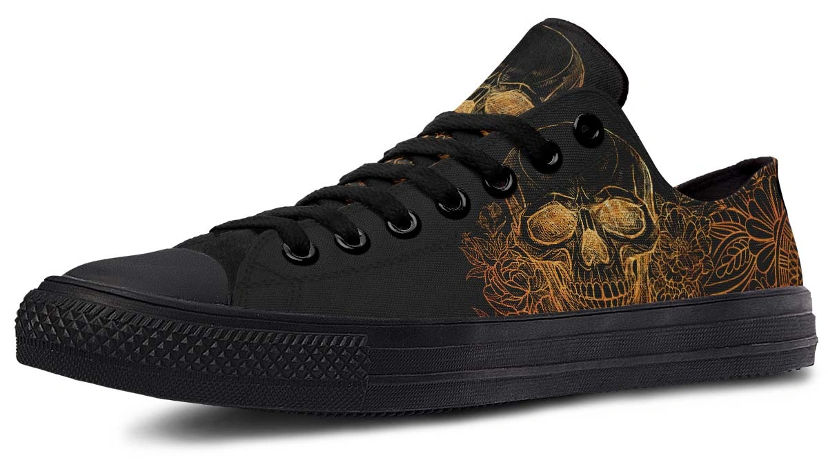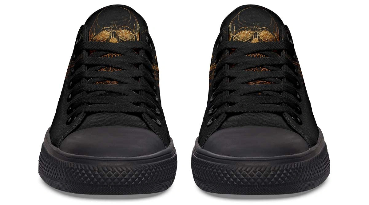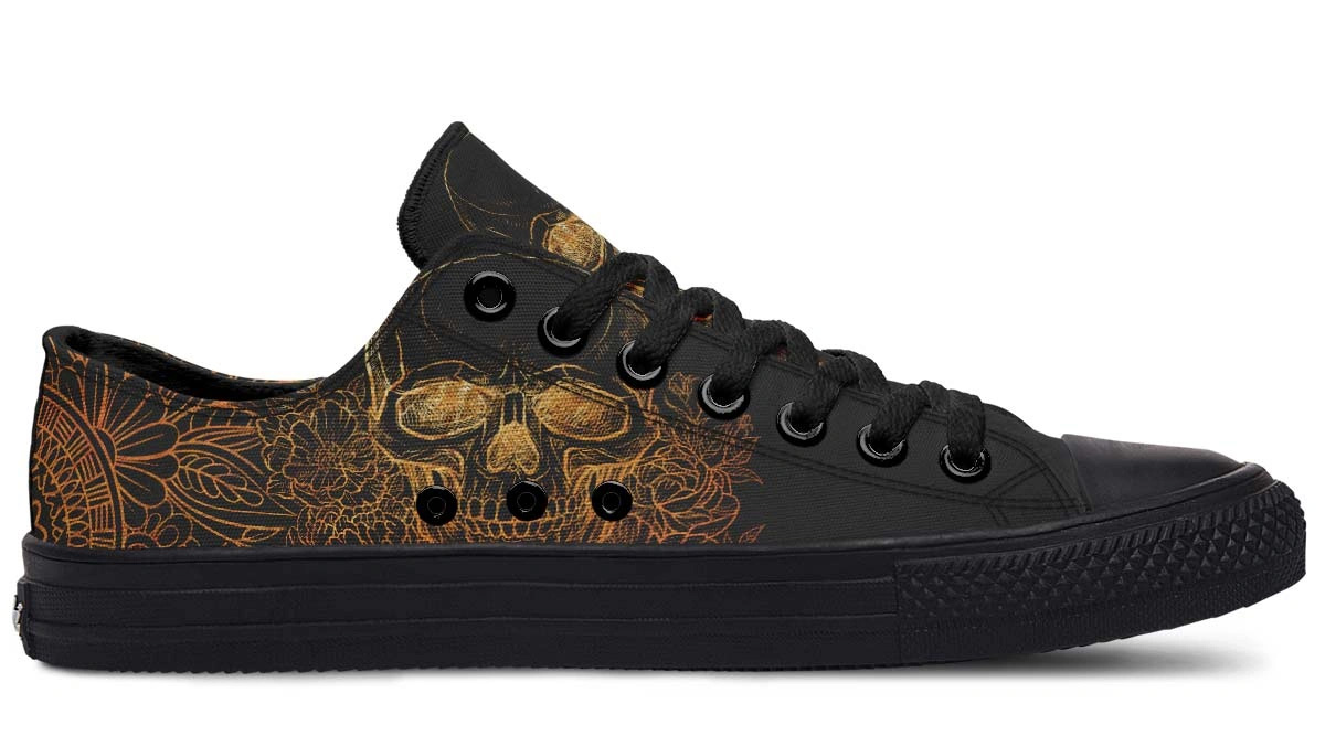 Gold Foil Skull Sneakers – Luxury Black Low Top Streetwear