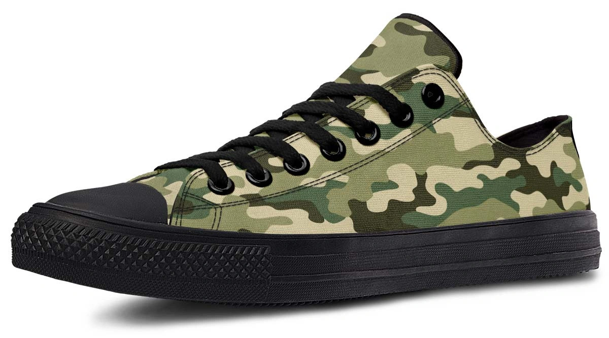 Gear up for your next adventure with our Soldier Camo Pattern Low-Top Sneakers. Designed for those who demand both fashion and function, these sneakers feature a classic olive and earth-tone camouflage print. The rugged construction ensures they can handle daily wear and tear, while the lightweight, breathable fabric keeps your feet cool and comfortable. With a reinforced sole for superior grip and a padded collar for extra support, these shoes are perfect for hiking, city walking, or adding a tactical vibe to your streetwear wardrobe.